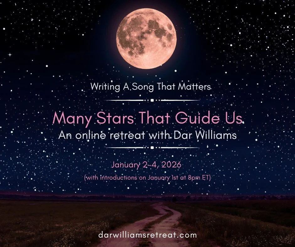 Many Stars That Guide Us - virtual retreat. The “Writing A Song That Matters” retreat, online in January each year since 2020.